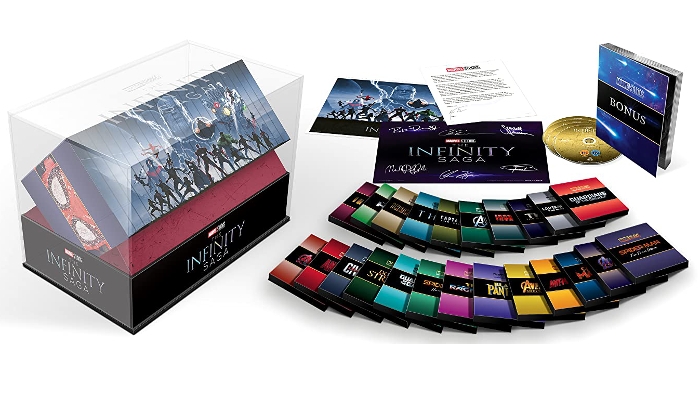 I film saranno raccolti in confezioni singole all'interno di una “teca” stile cofanetto di Hitchcock e accompagnati da una lettera di ringraziamento ai fan del produttore Kevin Feige, un poster sulla saga e una litografia esclusiva di Matt Ferguson.